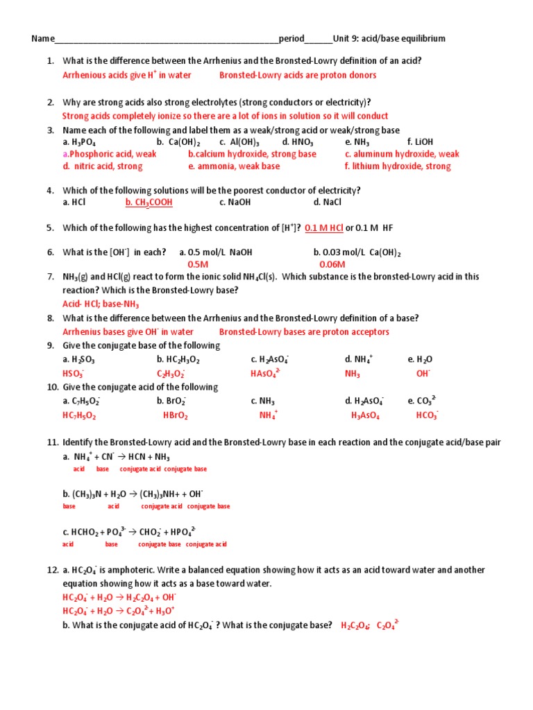 Unit 5 Solutions Acids And Bases Worksheet Answers